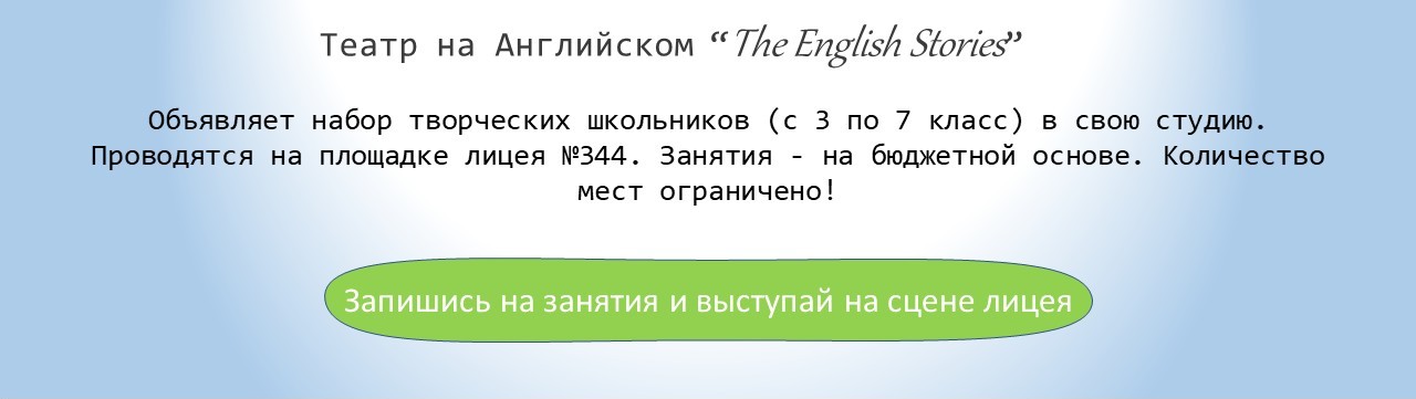 И в их числе – Театр на Английском “The English Stories”. Все дети достойны аплодисментов, а ещё -сегодня без английского языка никуда. Поэтому в нашей школе есть собственный английский театр. На наших занятиях мы сочетаем приятное (актерское мастерство) с полезным (английский язык), а в итоге получаем спектакль на иностранном языке по сказкам и рассказам известных писателей. Также мы осваиваем драматургические приемы и повышаем уровень культуры речи, даём волю фантазии и возможность проявить свои творческие способности и таланты. Мы сами готовим декорации, разрабатываем сценарии, переводим песни на английский язык и разучиваем танцевальные движения. Поэтому занимаясь в нашем театре, дети становятся более уверенными в себе, повышают языковую грамотность, развивают ритм и пластику движений. Наши театральные выступления – это не только большой праздник для его участников, но и прекрасная возможность для родителей увидеть результаты обучения и, конечно, повод для гордости за своего ребенка. Продолжит ли он свое будущее на актерском поприще? Не знаем. Но зато уверены, что опыт участия в нашем детском коллективе ему обязательно пригодится.